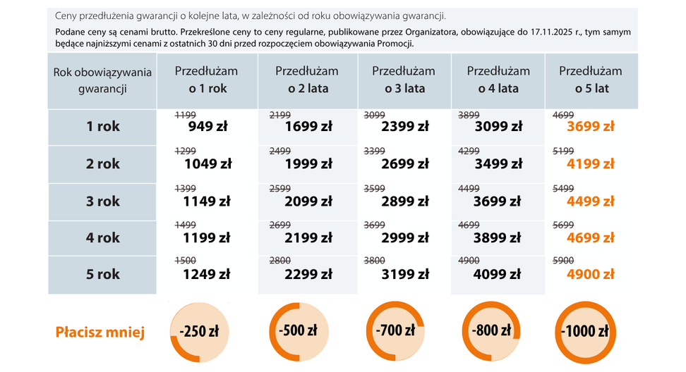 W dniach 17-23 listopada 2025 obniżamy ceny przedłużonych gwarancji